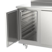 * Réserve réfrigérée en dessous avec 3 niveaux GN 1/1 ou 2/1 selon le modèle , porte magnétique démontable sans outil